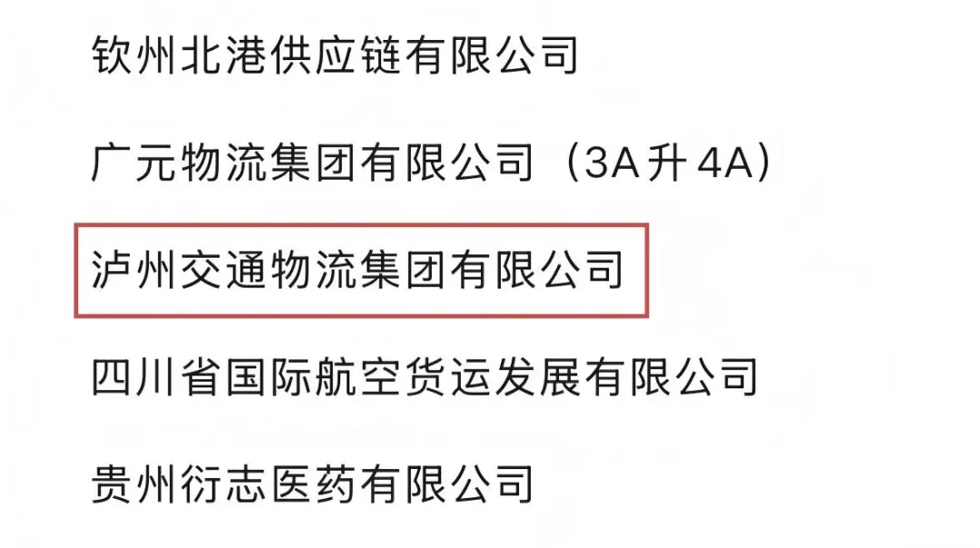泸州交通物流集团荣获“国家4A级物流企业”认证。